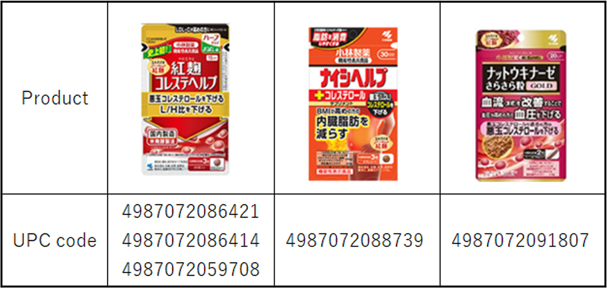 According to the announcement from Kobayashi Pharmaceutical Co., Ltd., this voluntary recall involves the following three products: